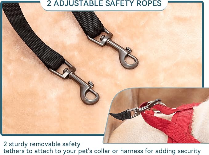 - [Lower Distracted Driving] The dog booster car seat is designed with an adjustable lanyard, a safety clip, and 2 patent buckles to secure the seat and keep it from sliding in the car. And come with 2 upgraded bigger safety ropes to avoid pets jumping out, It lessens the likelihood that you will become distracted while driving.