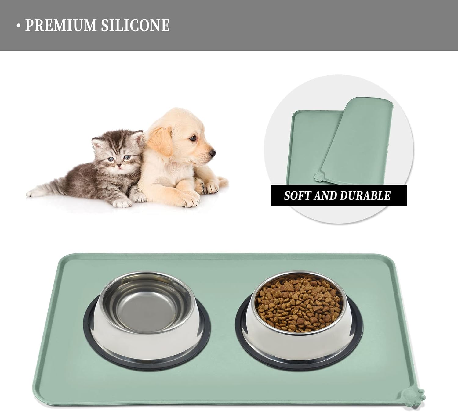 • Anti-slip design: our non-slip pet feeding mat ensures stability for your pet's bowl, preventing any water stains or spills on the floor. Enjoy peace of mind when feeding your pet, knowing that their food stays in place