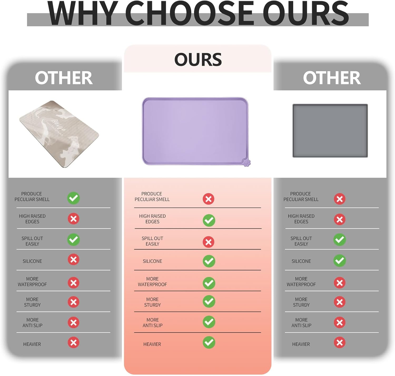 - High-raised edges: say goodbye to messy floors with our mats' high-raised edges that protect your floors from spills and splashes. Keep food and water contained and your floors mess-free