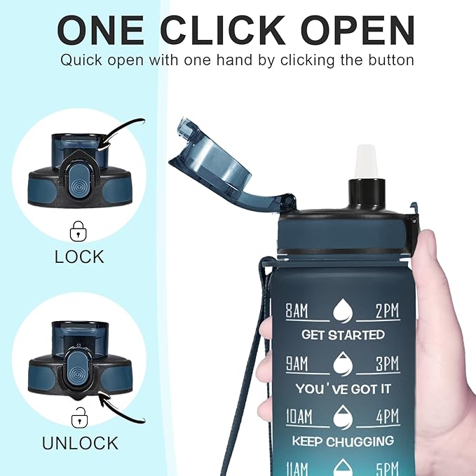 - 【Humanized Design】Water bottles with times to drink can quick open with one hand. The flip-top lid is used a secure lock, making it dust-free and leak-proof. Time water bottle is portable, light, and easy to use.