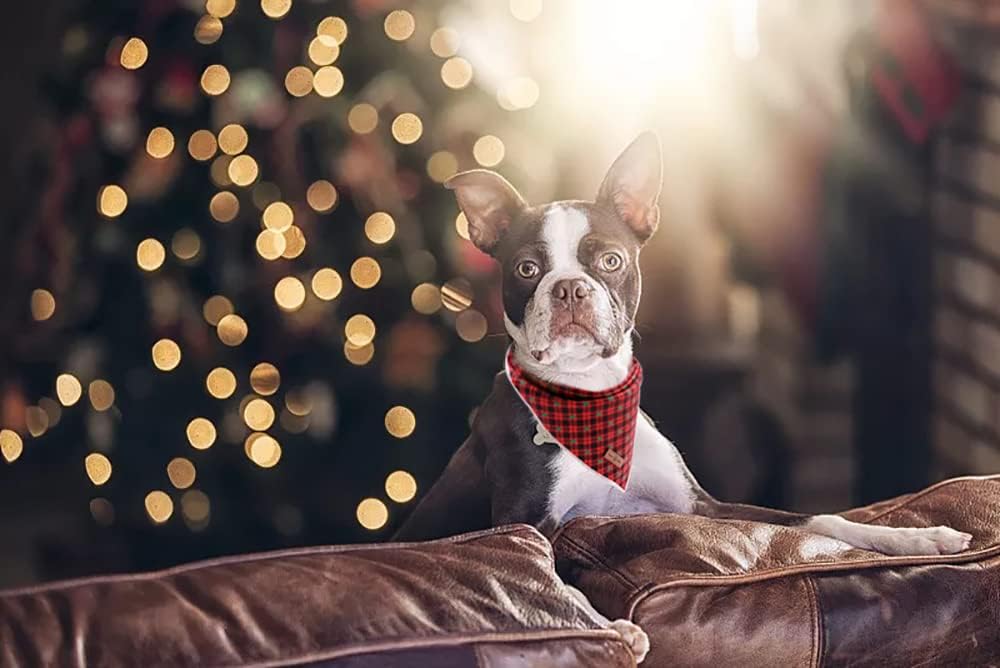 Lionet Paws Christmas Dog Bandana 1PC Pet Red Tree Dog Bandana Washable Reversible Cotton Boy Bibs Scarf, Adjustable Square Dogs Kerchief for Small to Large Dog