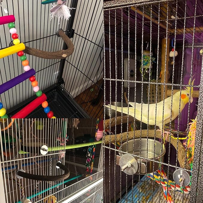 - Easy to install: Just use two pieces of metal to clamp the stand and the bird cage together, tighten with screws, and fix the stand to the cage. The bird perch stand can be placed anywhere in the cage.