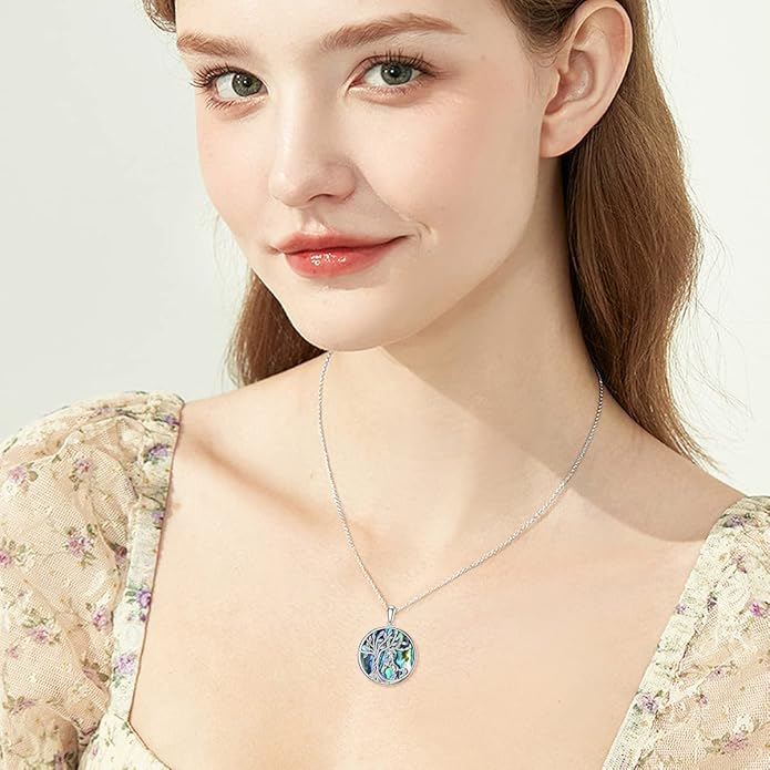 TOUPOP Tree of Life Animal Necklace 925 Sterling Silver Crystal/Abalone Shell Animal Pendant Jewelry Birthday Mothers Day Gifts for Women Mom Wife Her