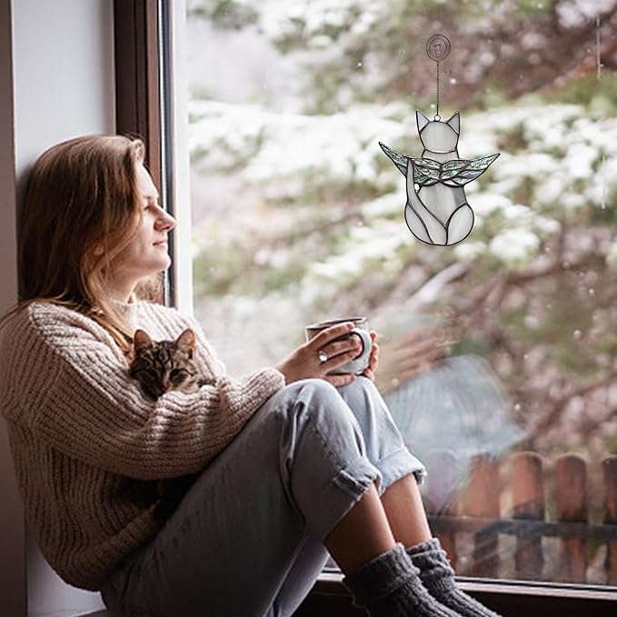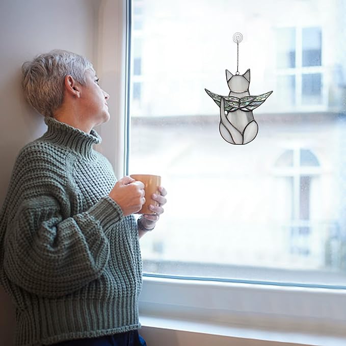- MEMORIAL GIFTS FOR CAT LOVERS:Our Angel Cat with Iridescent Wing is a Lost of Cat Sympathy Gifts for Cat Lovers,Mom,or Anyone who Loves Cats and Animals.Our Window Hangings Art Will Warm Anyone's Heart and Our Stained Glass Will be the Perfect Cat Memorial Gift
