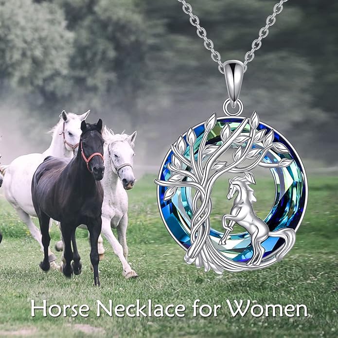 - ♥ Horse Gifts for Women ♥ Horse necklace is specially designed for those who love horses. Under the tree of life, horses are naturally vivid. With the tree of life and crystal, it is both charming and suitable for gifting.