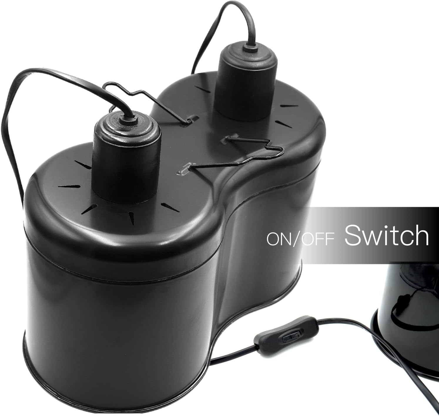 Reptile Dual Dome 12inch, Fits Reptile Light/Heat Lamp/UVB Light, Max. 160W Each,Patent Design K8561, Reptile Light Fixture