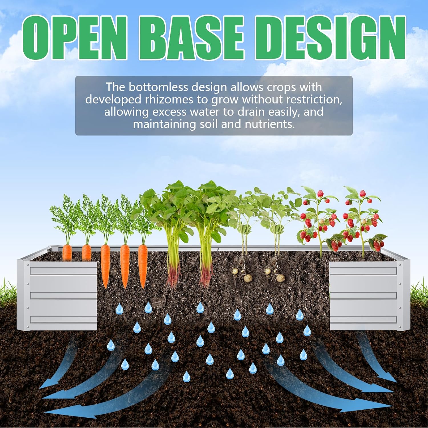 - Safe Design: Bottomless planter allows plants to grow without touching metal, and provides good drainage to keep weeds away.