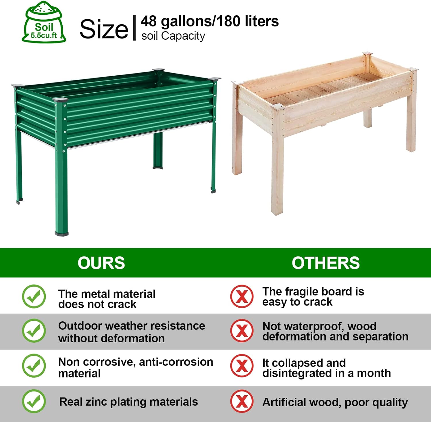 Land Guard Galvanized Oval Large Metal Raised Garden Bed with Legs for Vegetables (Green)