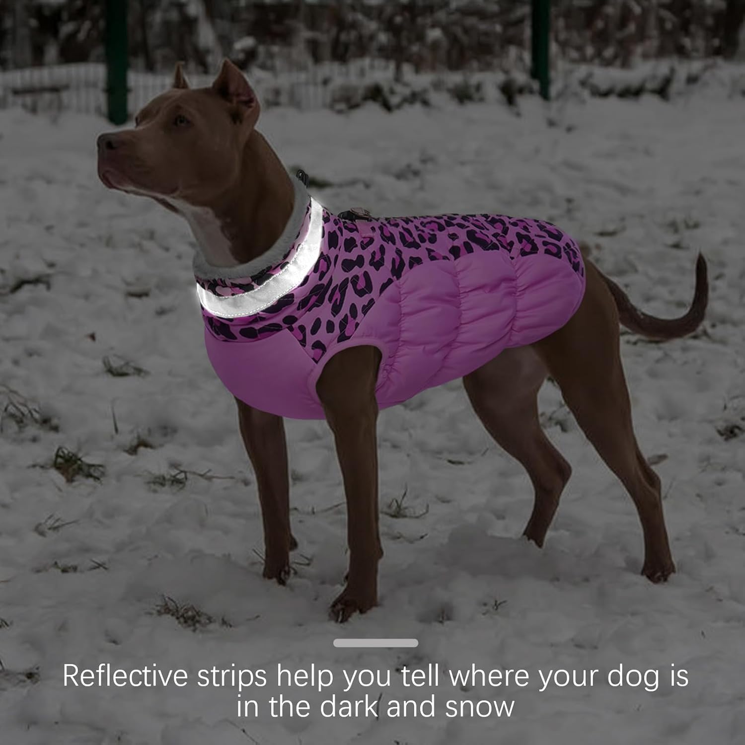 FUAMEY Dog Coat for Medium Dogs,Waterproof Dog Winter Jacket with Harness Built in Puppy Cold Weather Coats Reflective Pet Vest with Zipper Warm Fleece Dogs Snowsuit Windproof Pink Leopard M