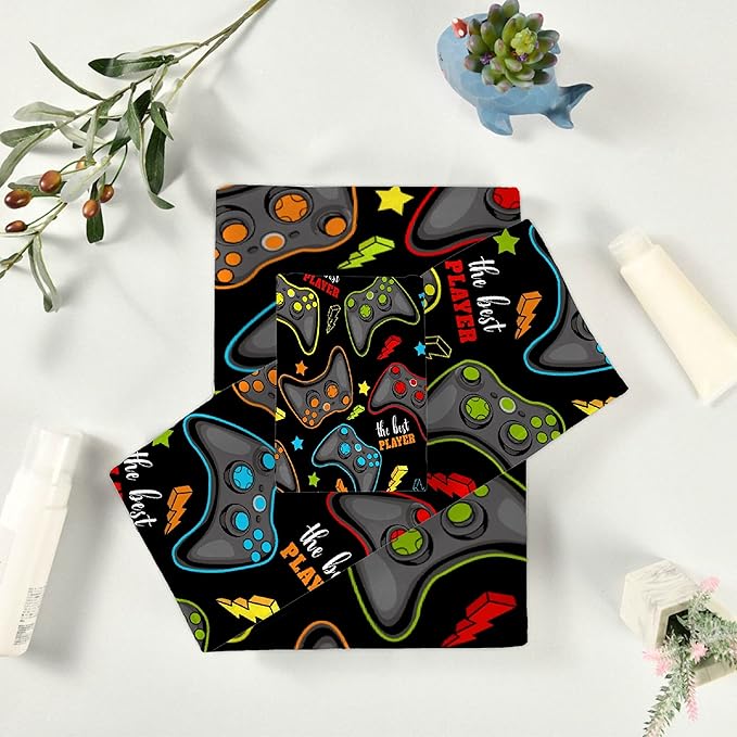 Gaming 3 Piece Towel Bathroom Sets, 1 Bath Towel, 1 Washcloth, 1 Hand Towel, Cotton Fast Dry Soft Absorbent Towel Set for Home Kitchen Family