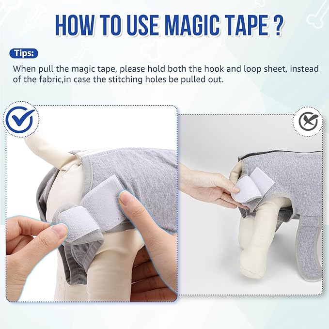 - 【Prevent Licking & Convenient Back Magic Tape】 --- The recovery suit for dogs helps prevent your furry friend from scratching and licking their surgical wounds, which can lower the chances of getting sick from the wound and further injury. The magic tape closures at the back can be rolled up if needed. It is suitable for post-surgery, neutering, skin medication, weaning, and daily use.