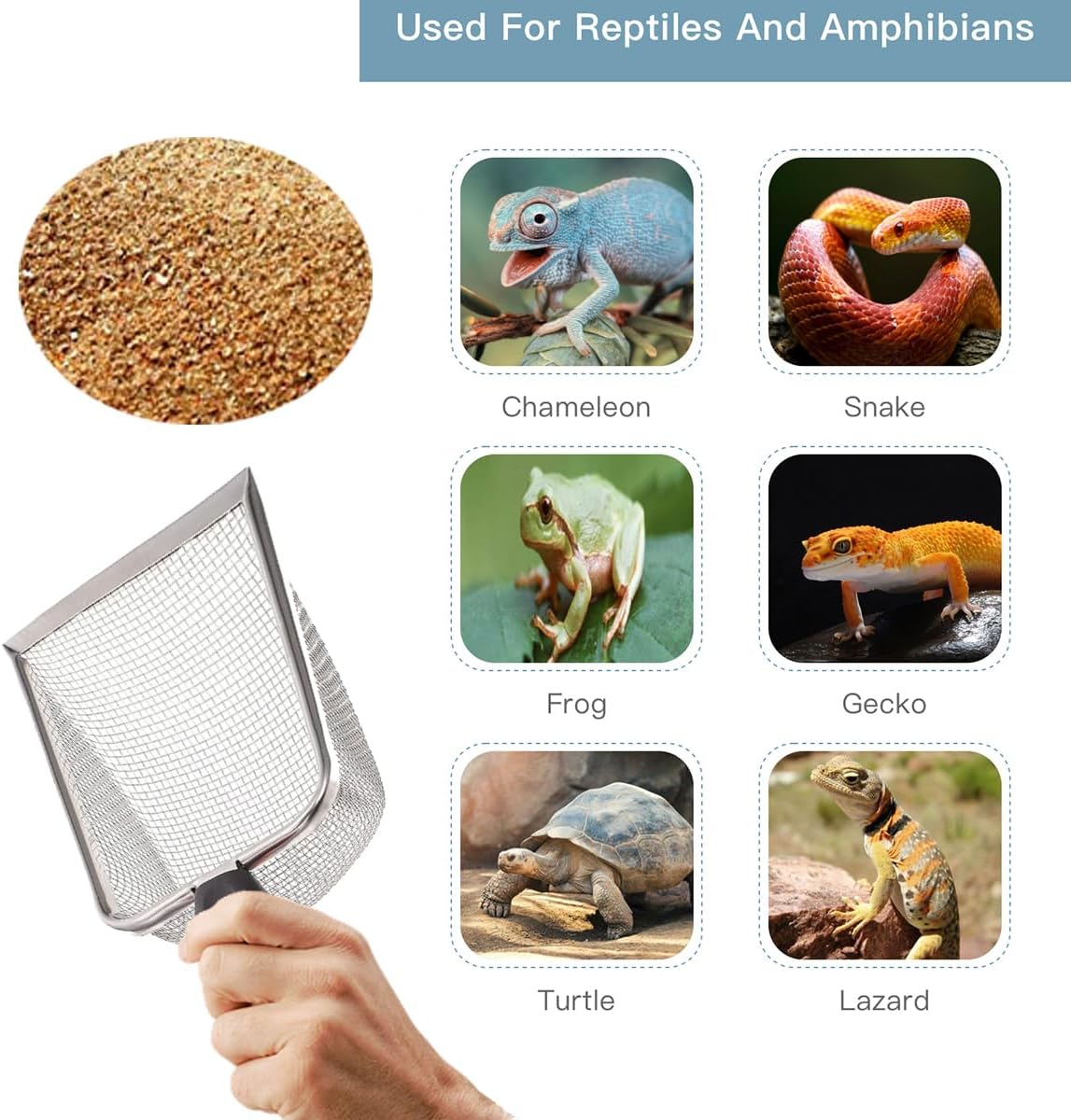 - Cat Litter Scoop: Different mesh design, not only can be used for reptile glass tank sand filtration, but also can be used for cat litter filtration, can improve the reuse of cat litter