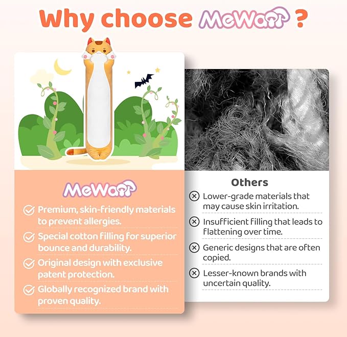 - Cat Body Pillow Multipurpose: We provide you not only a multiple-size hugging pillow, but also the best lumbar body pillow when you sitting on a sofa, and also the most comfortable sleeping pillow for a sweet sleep on the bed.