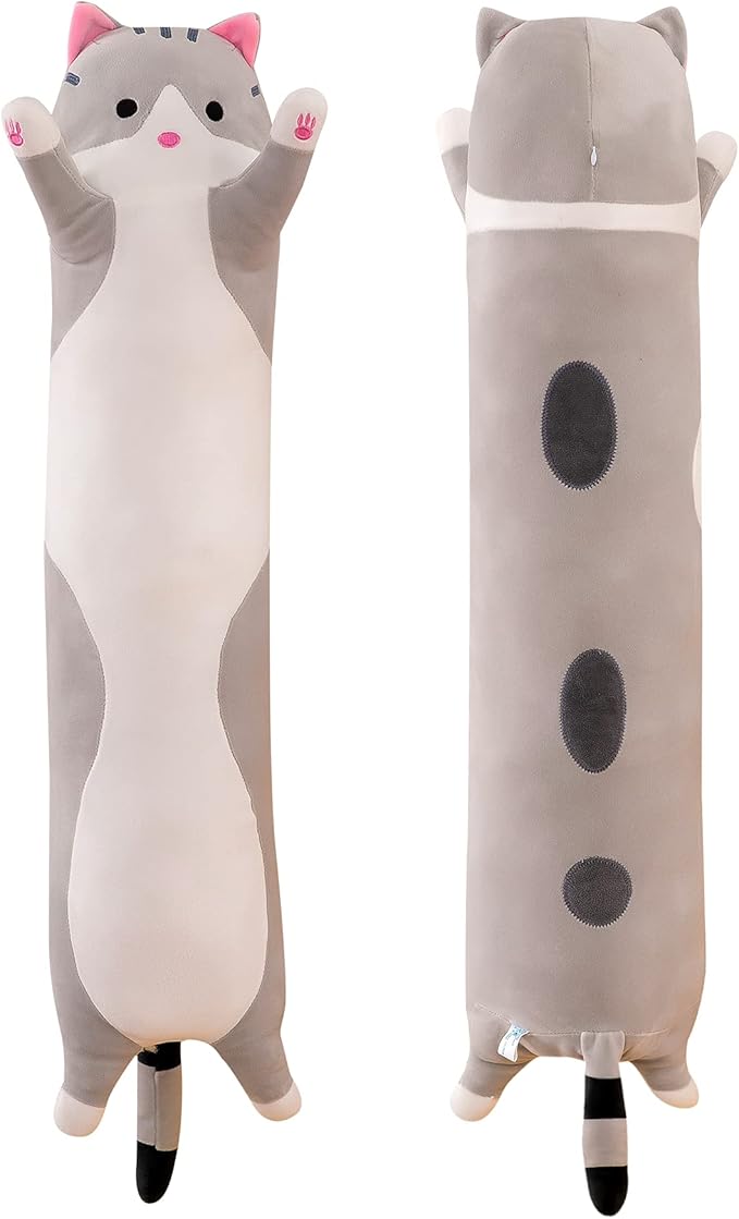 - Warm Gifts: Long animal cat body pillow is suitable for all ages. The long stuffed cat plush is lovely, soft and healing. It is very suitable for gift to children, family, classmates, friends, girlfriend. It is an ideal gift for important days such as Christmas, Thanksgiving, Children's Day, Valentine's Day, birthdays, etc