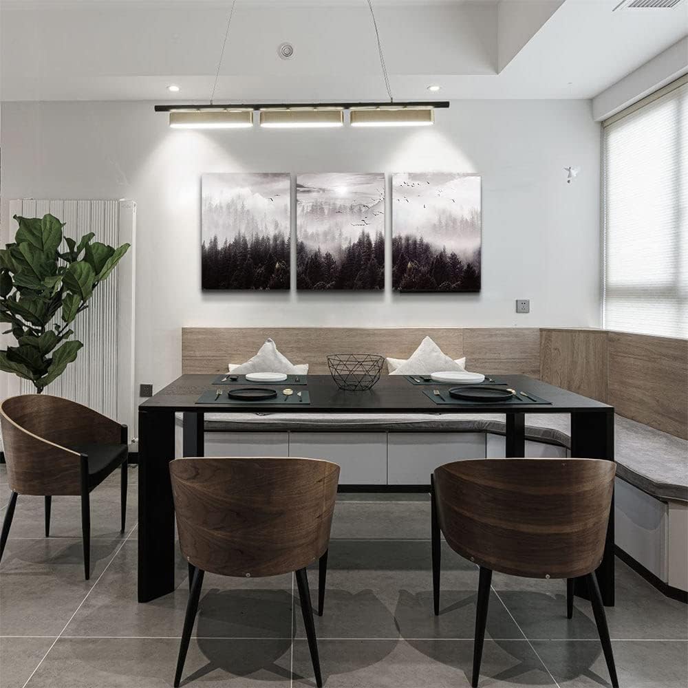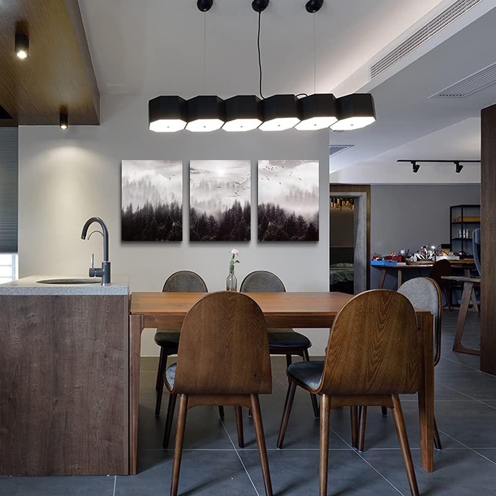 Large Size Canvas Wall Art For Living Room Boho Wall Decor For Bedroom Wall Decorations For Office Foggy Forest Trees Wall Paintings Scenery Wall Pictures Artwork Home Decoration 20" X 28" 3 Piece
