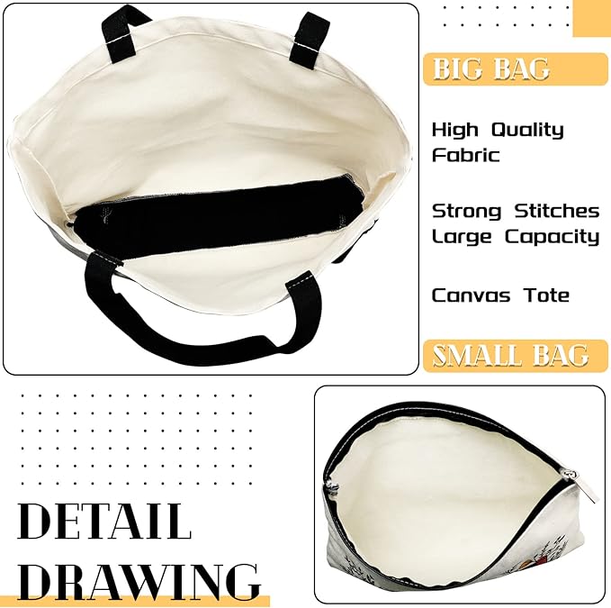 - Notable Size Information: this library book bag measures about 15.75 x 17.72 inches/ 40 x 45 cm, and the small makeup bag is about 9.84 x 7.09 inches/ 25 x 18 cm, a suitable size can fulfill your daily needs for accommodating things; Moreover, the cosmetic bag can help you organize small and personal things