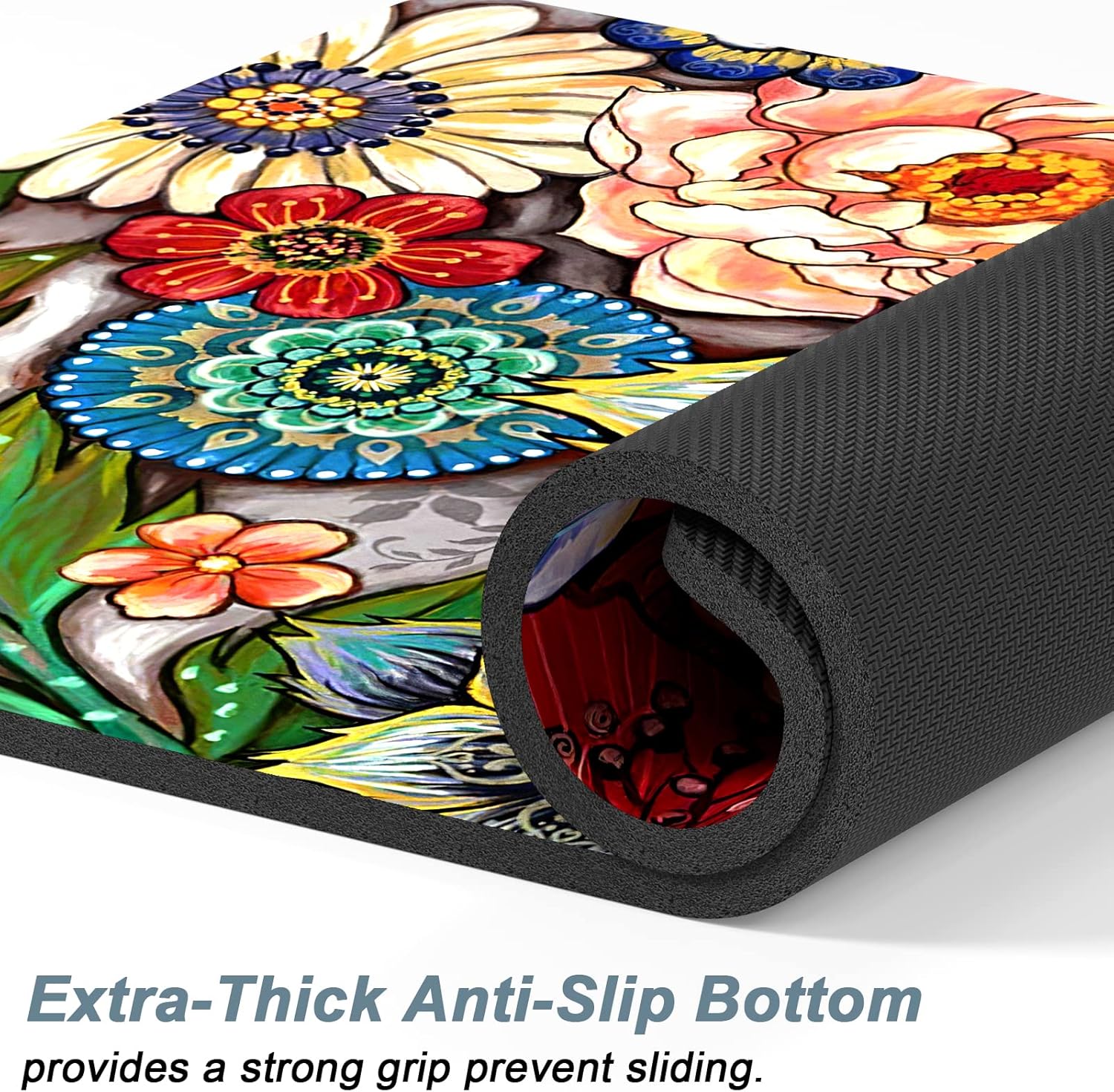 Rnivvi Dog Food Mat, 12" x 19" Flower Absorbent Dog Cat Bowl Mat for Food and Water, Cute Anti-Slip Rubber Pet Feeding Rug Protect Floors, Puppy Placemat for Feeding & Watering Supplies,Mandala Floral