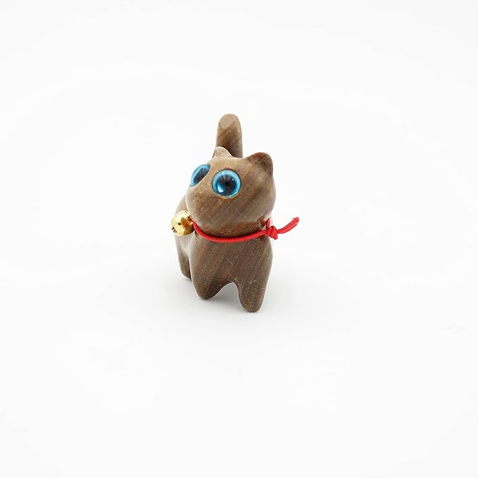 Green Sandalwood Hand Carved Wood Cat, Kitten & Treasure Cat Sandalwood Sculpture Gift & Home Decor Figurine