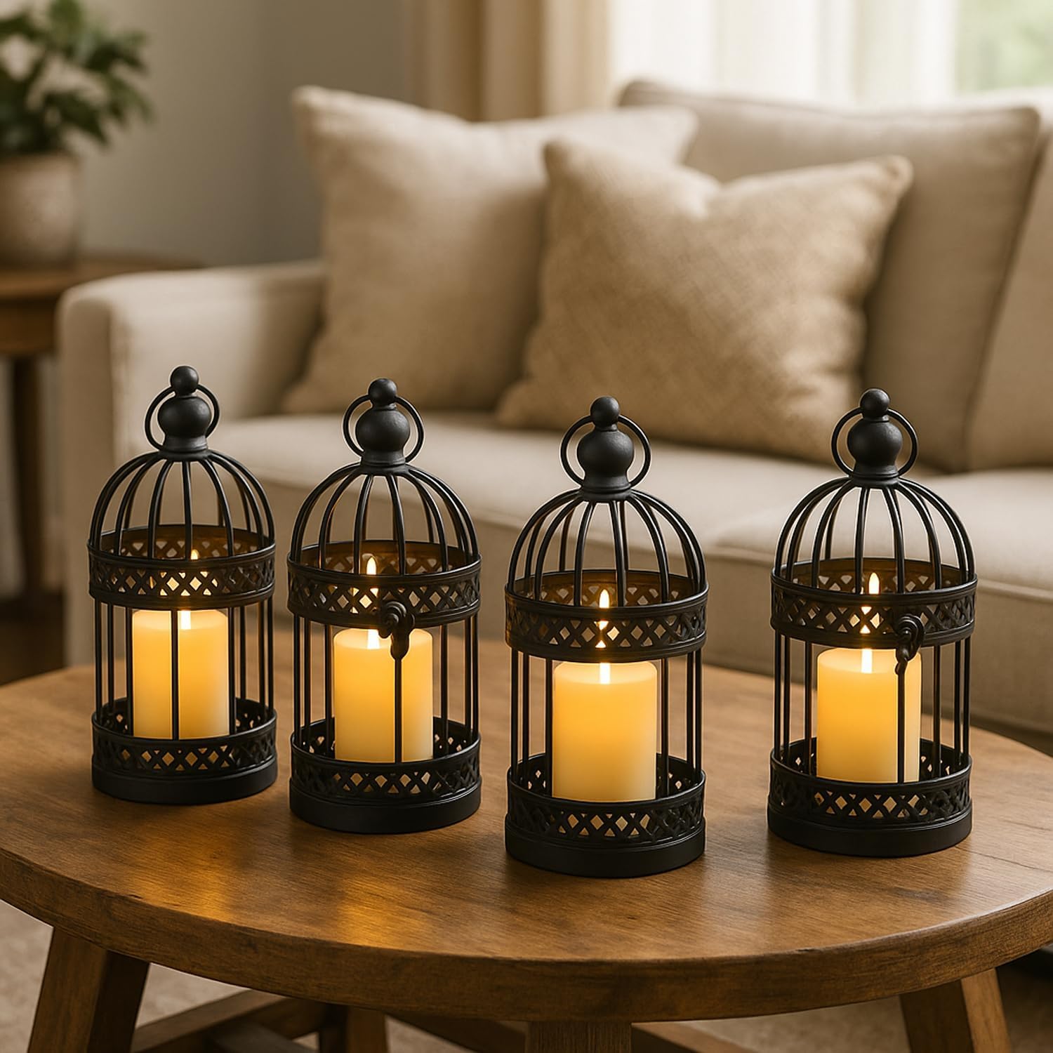 Vela Lanterns Birdcage Decor Candle Holder Lantern Decorative Table Centerpiece Halloween Decorations, Black, Small, Set of 4