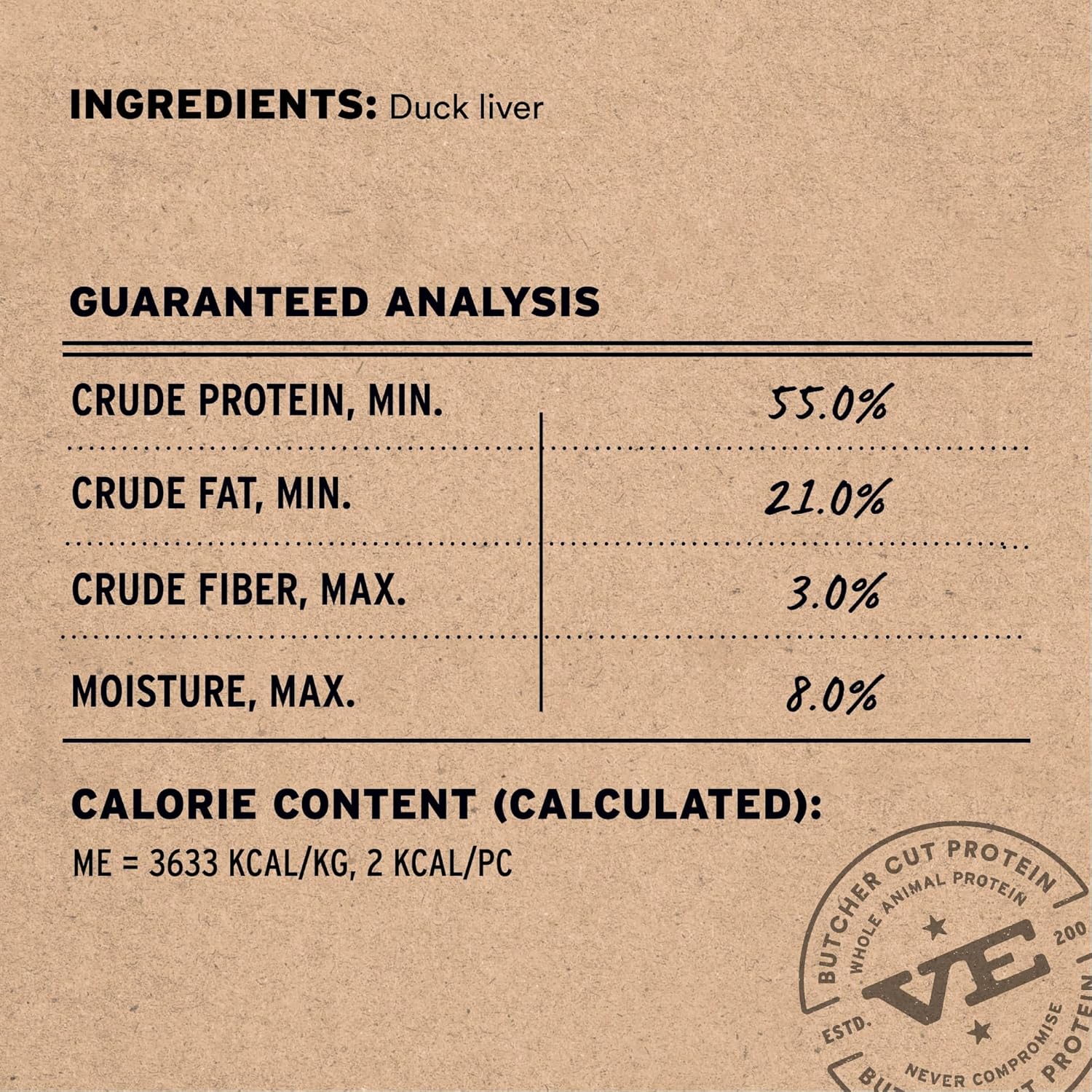 - FREEZE-DRIED RAW DUCK LIVER CAT TREAT: Vital Essentials Freeze Dried Cat Treats pack more protein than industry standard into every bite to deliver the peak vitality your dog deserves. Our natural freeze-dried raw cat treats are made from responsibly sourced, premium butcher cut duck liver.
