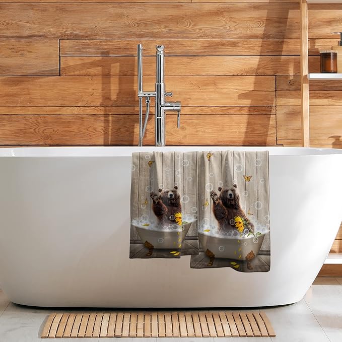 Giwawa Funny Bear Hand Towels Set of 2 Brown Bathtub Decorative Bath Towel Soft Absorbent Towel for Bathroom Kitchen Dish Spa Yoga 14"x28"