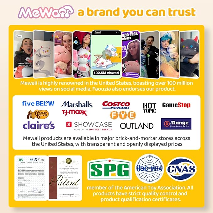 - Cat Pillow Cute Design: With its lovely and lifelike cat stuffed animal pillow, a smiling appearance, and soft fabric. All bad emotions and work stress will disappear when you embrace stuffed toys! This cat plush can accompany you or your friends through lonely times.
