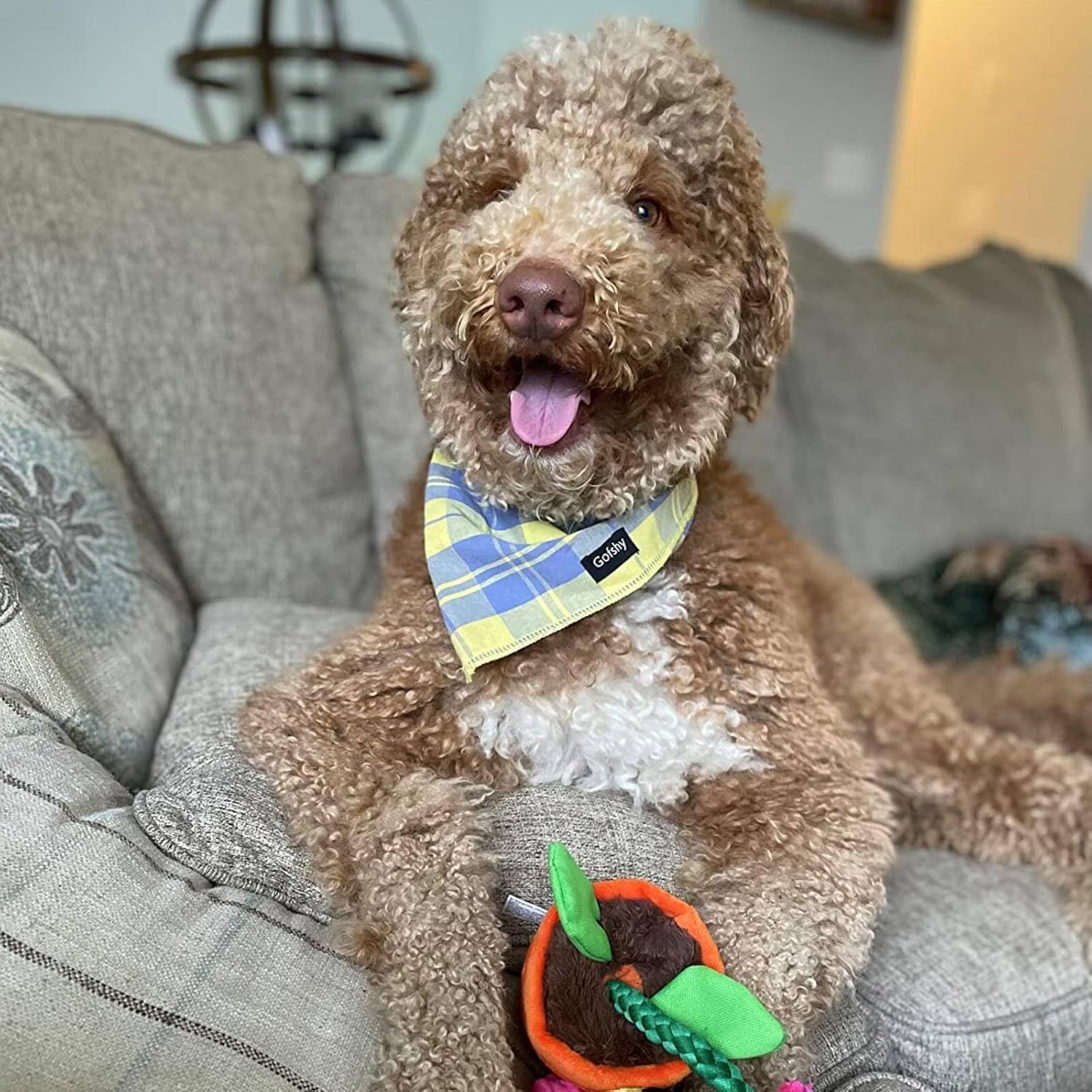 Summer Dog Bandana XLarge-Dog Scarf Vibrant Color Yellow Blue Plaid Printing Adjustable Bib Handkerchief Accessories for Large Dogs (XL)