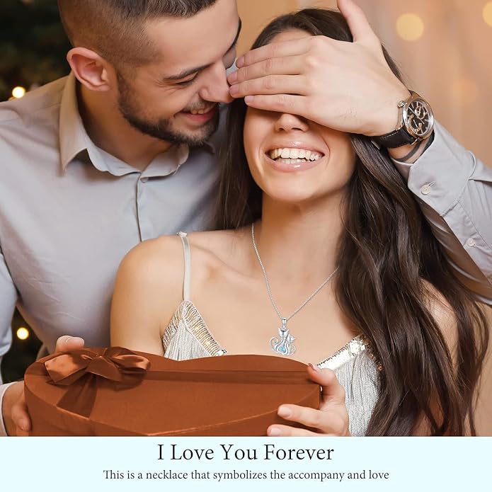 Odinstone Cat Necklace, S925 Sterling Silver Cat on Moon Pendant with Cubic Zirconia, Cat Jewelry Mothers Day Gifts for Mum with Gift Package - I Love You Forever