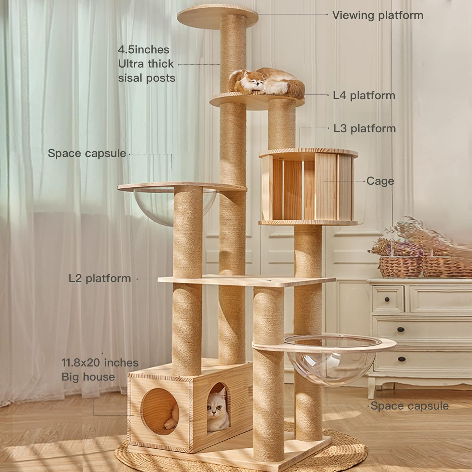 - 【Real wood】Cat tree made with natural pine wood. Cost-worthy and durable