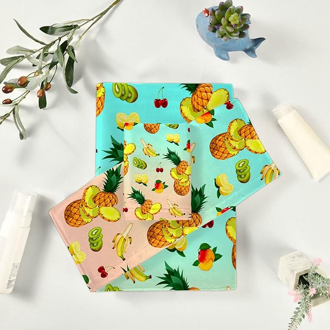 Gaming 3 Piece Towel Bathroom Sets, 1 Bath Towel, 1 Washcloth, 1 Hand Towel, Cotton Fast Dry Soft Absorbent Towel Set for Home Kitchen Family (Summer Fruits)