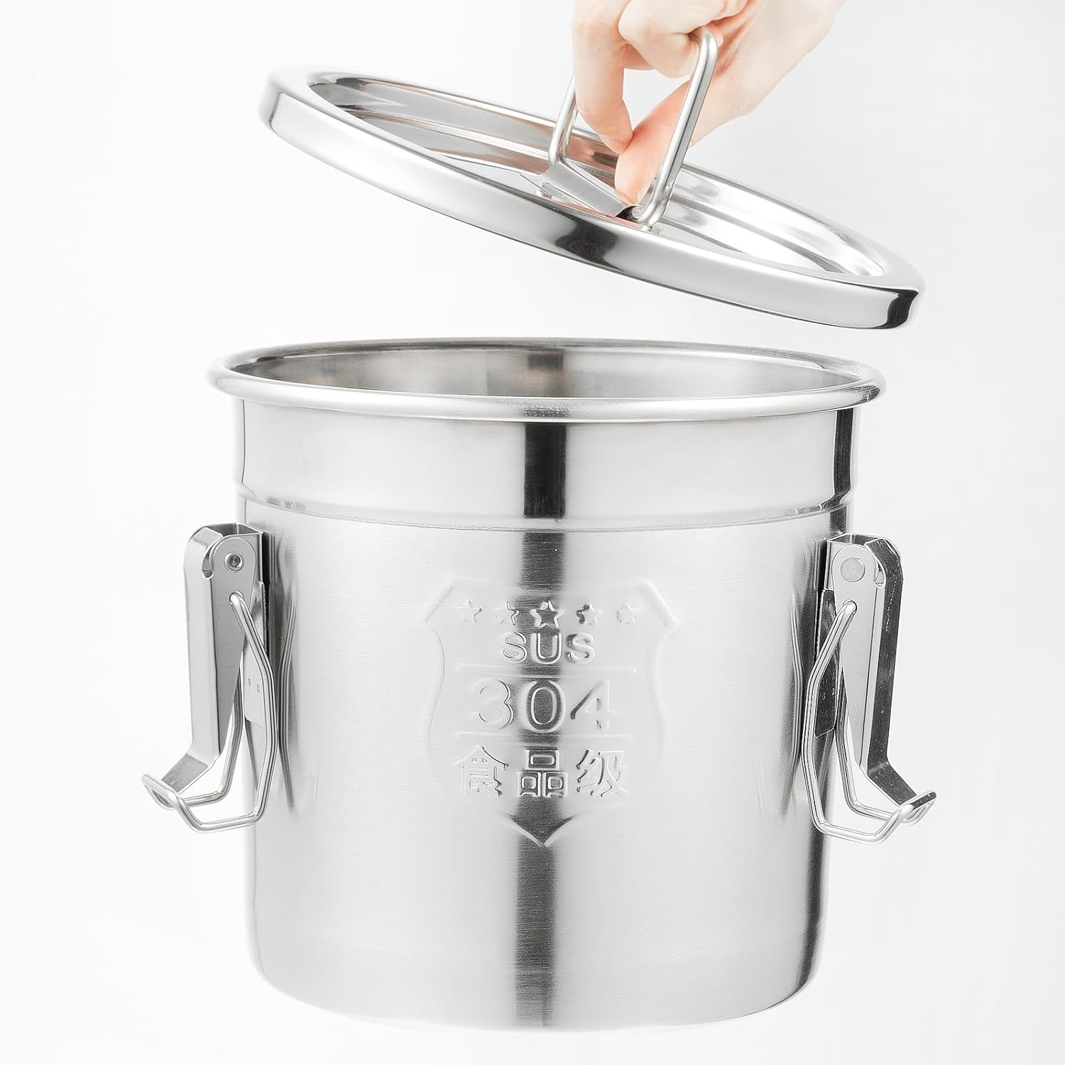 DYNAMI 304 Stainless Steel Containers With Lid,202oz Airtight Flour Container for Kitchen,5-10lbs Metal Airtight Canisters Milk Jug Coffee Bean Cookies Canisters w/Locking Clamp (6L/1.6Gal)