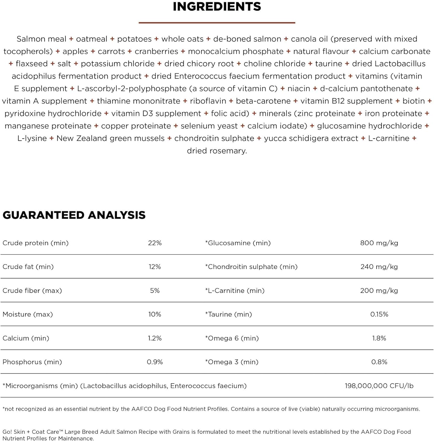 Go! Solutions Skin + Coat Care, Dry Dog Food, Large Breed Adult Salmon Recipe with Grains, 25 lb Bag