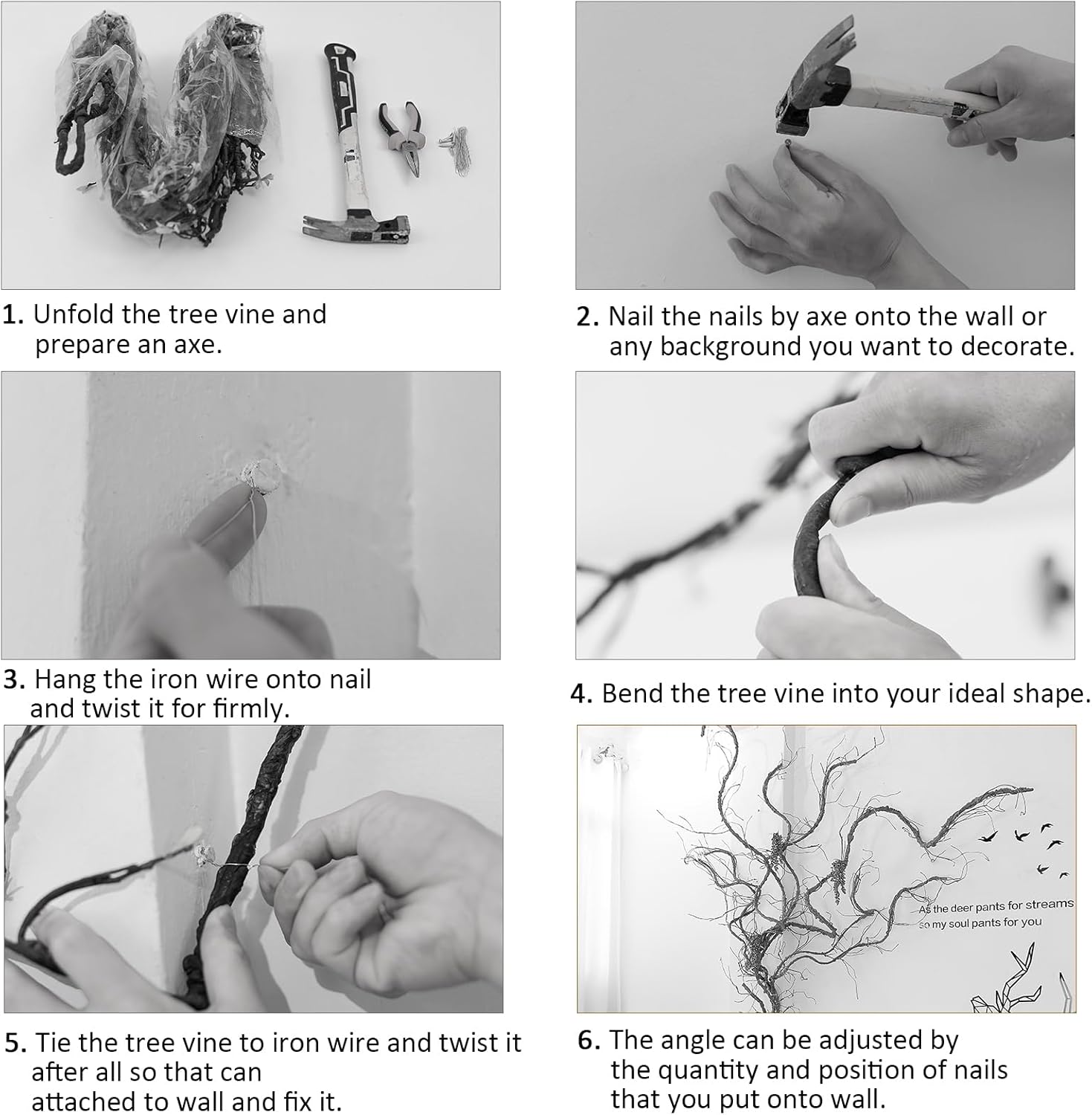 - 2. Style: The design of the natural dead tree vine looks very retro, symbolizing the power of life is endless. The whole big branch and all the small branches have wires inside so it can be arranged exactly how you want it, and it's very lightweight so it can be easily hung anywhere. Realistic and natural style can provide a relaxing environment.