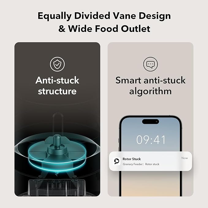 - Never Miss A Meal: Easily schedule up to 10 meals per day with 1-48 portions per meal (1/12 cup each portion), you can easily customize your furry friend's feeding plan and check the feeding records to ensure your cat or dog has been fed on a set schedule by the APP. Also, you can also check the daily food intake and meal times of the fur child through the log on the App.