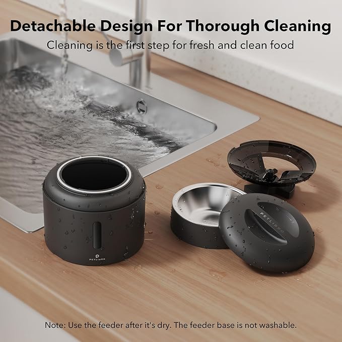 - Freshness in Every Bite: Patent rotor in the tank base and twist-lock lid prevent pets sneaking into the food dispenser for extra food. Built-in desiccant bag and sealing strip keep food fresh and crunchy. Food-grade stainless steel bowl provides healthy and hygienic feeding, saving your pets from chin acne.