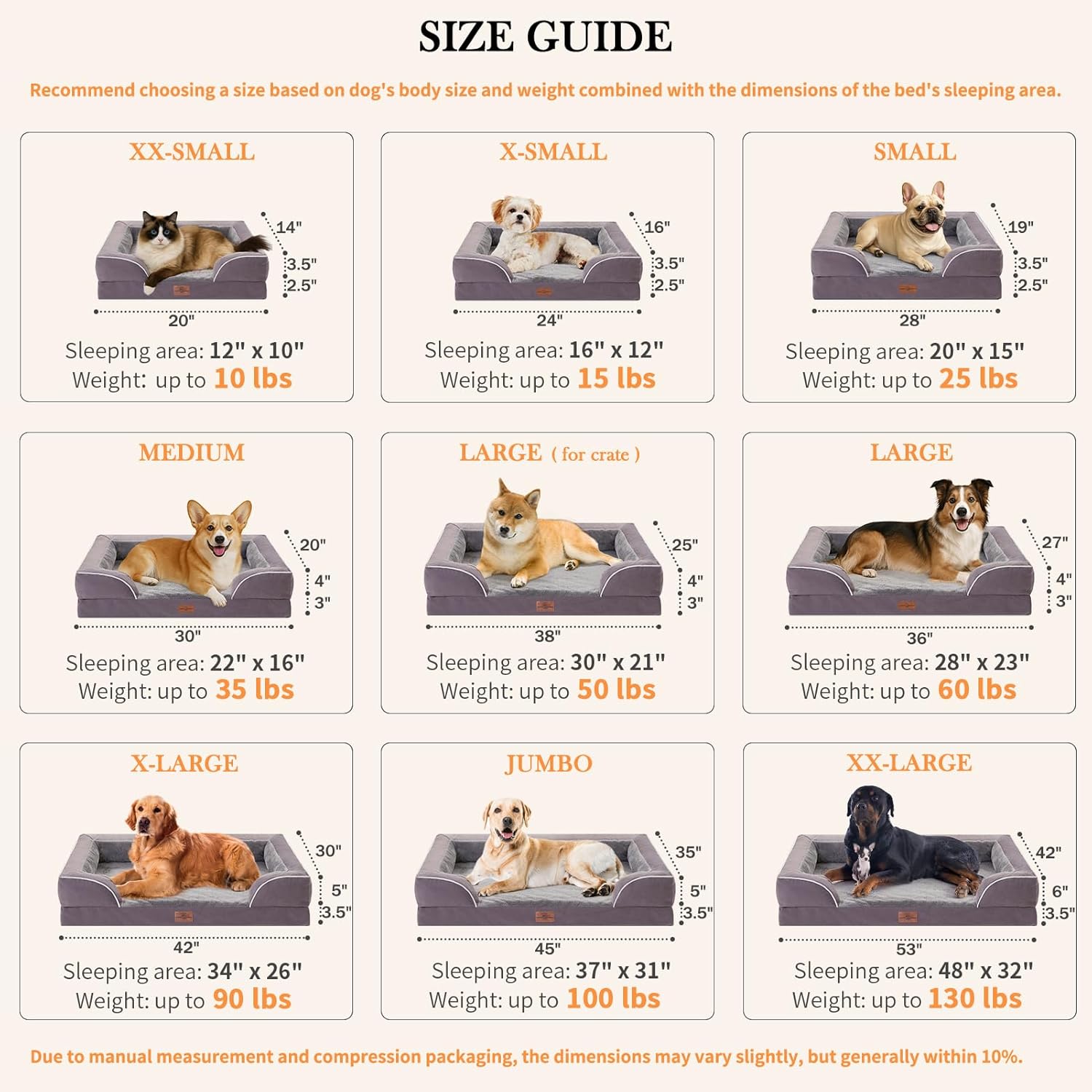 Comfort Expression Large Dog Beds Waterproof Comfy Pet Bed for Dogs Sofa, Orthopedic Foam Dog Beds with Washable Removable Cover & Non-Slip Bottom(Large,Purple)