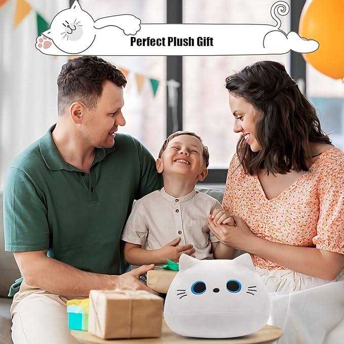 10'' Soft Cute White Cat Plush Toys, Soft Squishy Plushies, Perfect Home Decoration Gift for Cat Lovers, Kids, Boys, Girls (White, 10 Inch)