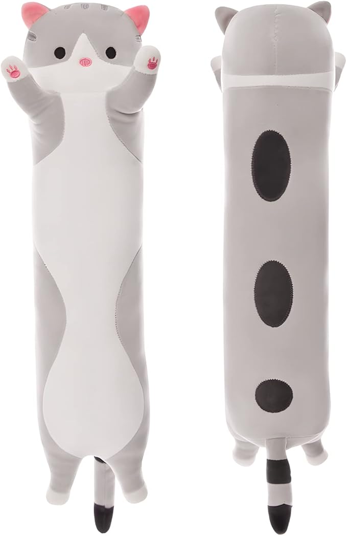 Long Cat Plush Pillow, 19.6in Cute Cat Plushie Stuffed Animals Body Pillow, Grey Kawaii Kitten Soft Plushie Doll Toy Birthday Gift for Kids Girlfriend