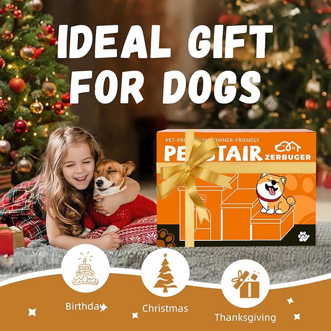 - A TOUCH OF LOVE FOR YOUR HOME: Zerbuger stairs are designed for pets and kids 3+. For your pets, our sturdy dog stairs provide a stable, secure way for dogs up to 200 LBS to climb onto furniture or beds. For your little ones, our stairs provide a safe and easy way to climb onto the bed. No more struggling or asking for help. It's a great way to encourage their independence while ensuring their safety. Our stairs add a touch of warmth and functionality to your home, creating a cozy and happy environment for the whole family.