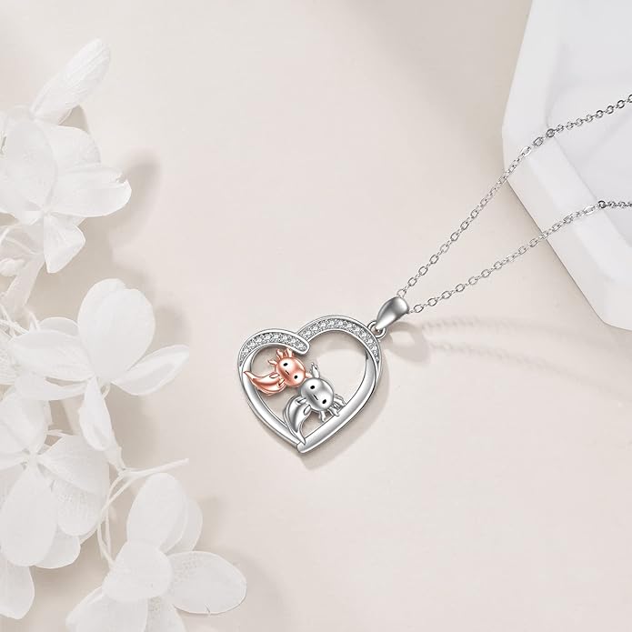 Sterling Silver Cute Animal Pendant Necklace Fox/Snake/Unicorn/Owl on Moon/Rabbit/Horse Necklace Jewelry Gifts for Women Mom Sister