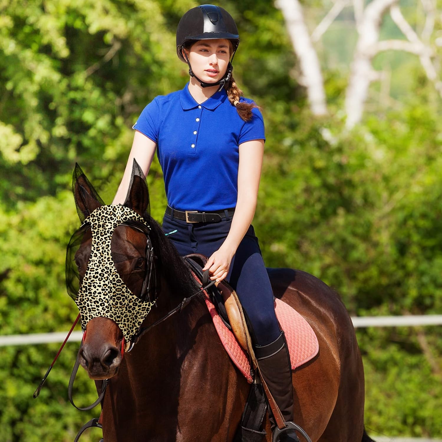 Chunful 6 Pcs Horse Fly Masks with Ears Smooth and Comfortable Cashel Mesh Fly Mask Elasticity Breathability UV Protection Horse Face Covering for Riding Supplies(Leopard,Medium)