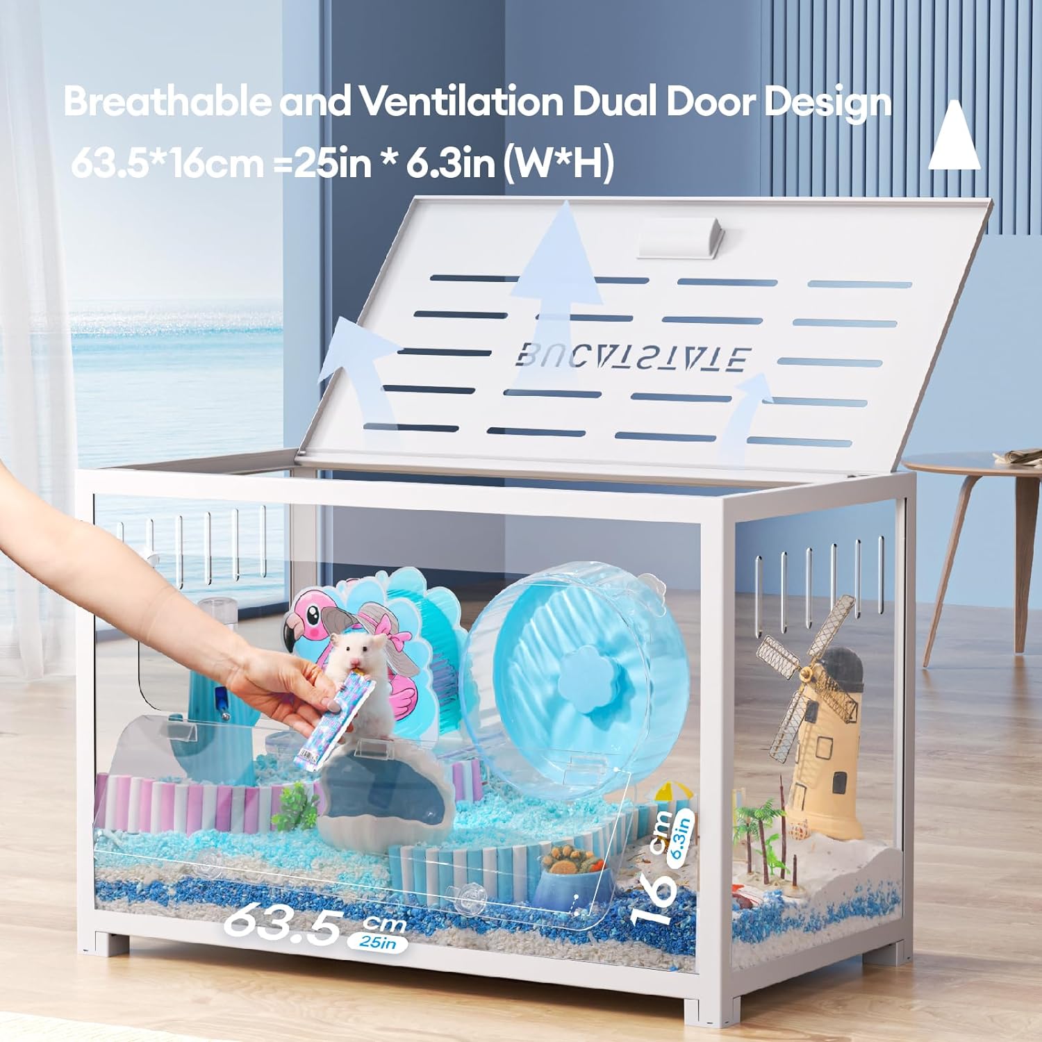 - 【Metal Structure & Chew Proof】We designed a metal frame combined with high-quality acrylic boards that achieve the structure stability of the cage, effectively preventing hamsters chew proof and escape-proof. 4 view windows that allow you to see your pets frolicking around in an environment designed to simulate natural conditionals from 360 angles. Water and rust-resistant that’s fairly easy to clean.