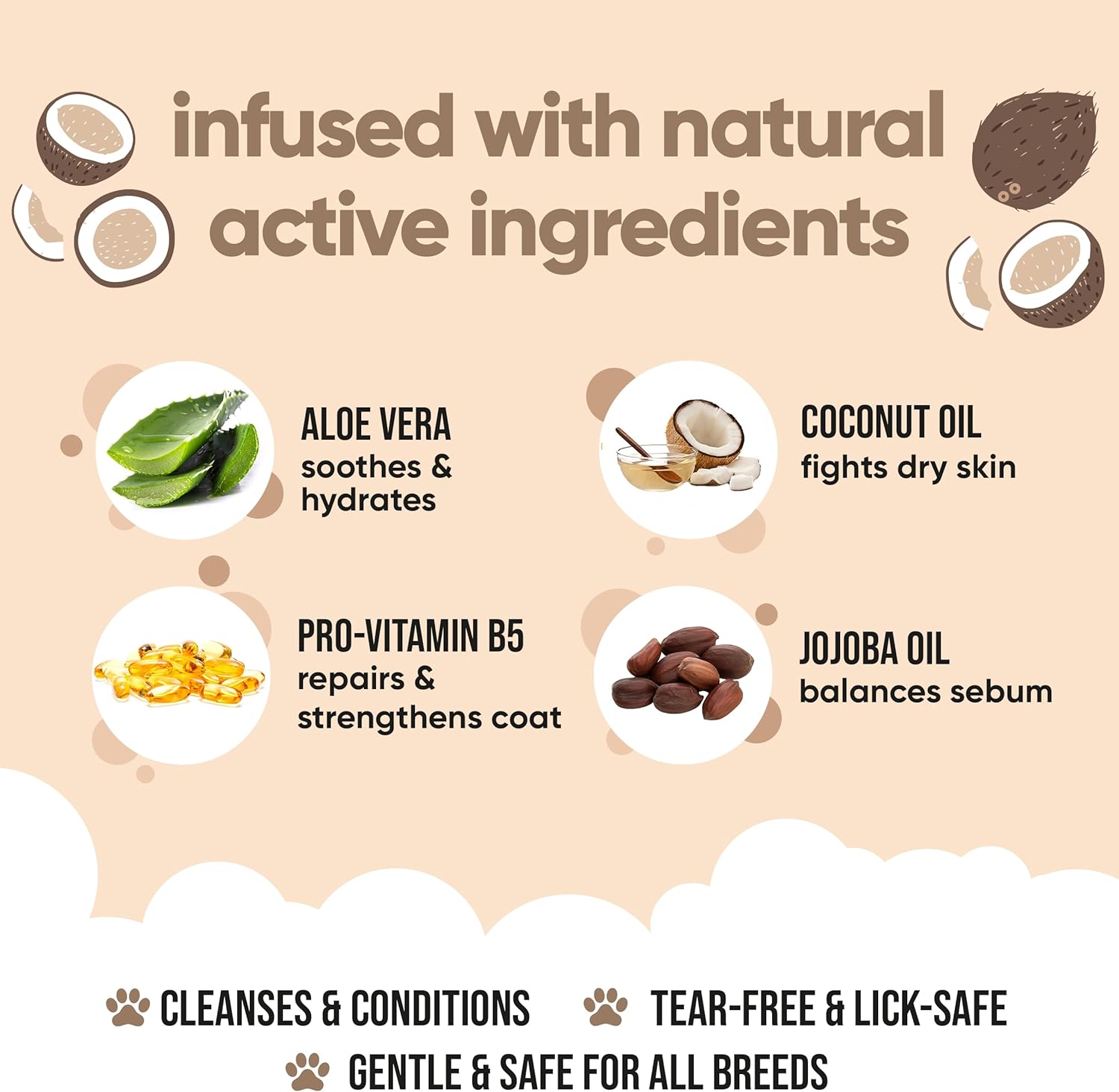 2in1 Dog Shampoo and Conditioner (16.90oz) | Coconut Scented Dog Shampoo Sensitive Skin | Hypoallergenic Itch Relief for Smelly Dogs | Essential Dog Grooming Supplies