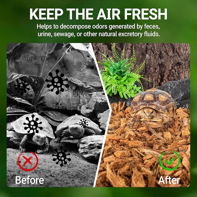 - 【Natural Fragrance & Odor Absorption】: 100% pure natural coconut shell matrix helps to decompose the odors generated by feces, urine, sewage, or other naturally excreted liquids. Maintaining fresh air in indoor or public spaces and keeping your reptile's habitat clean and healthy.
