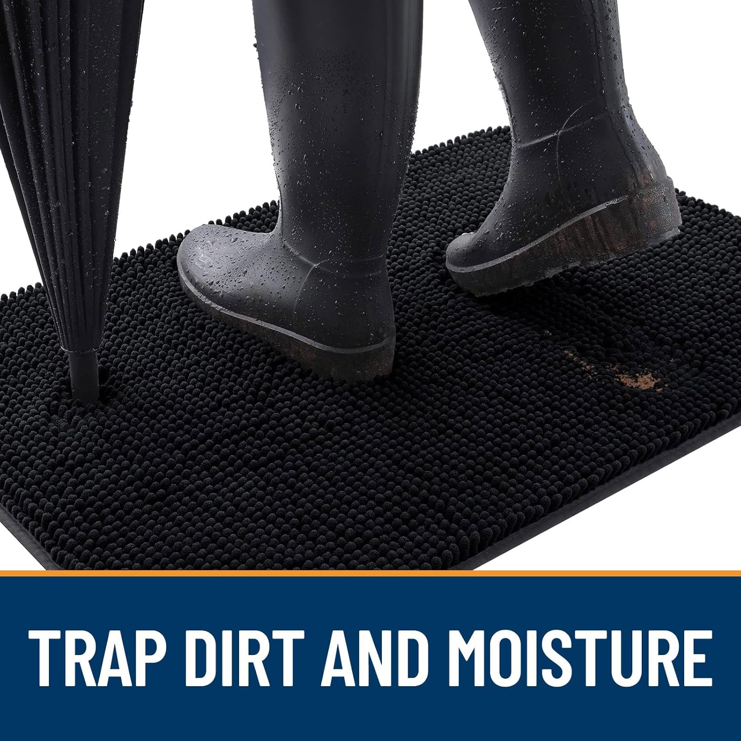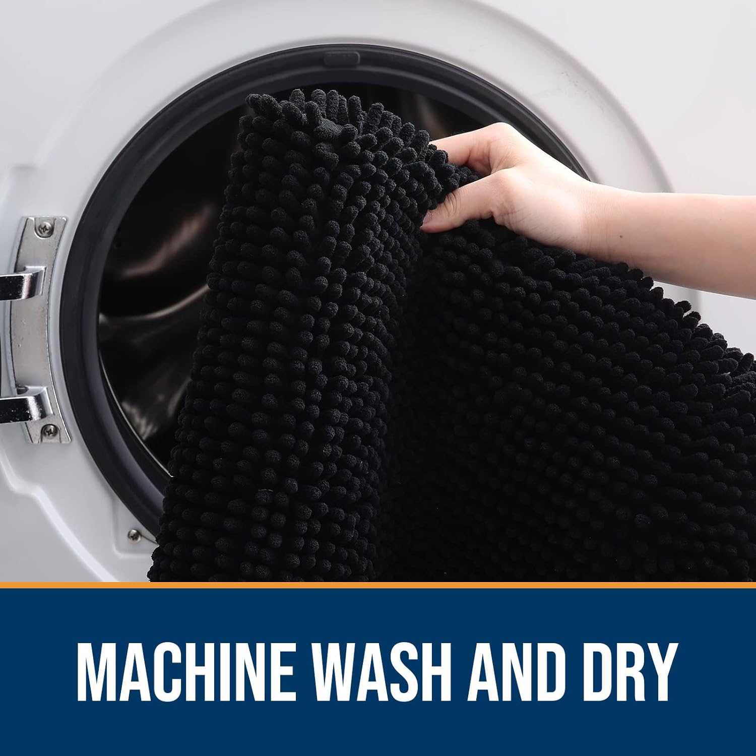 OLANLY Dog Door Mat for Muddy Paws 47x24, Absorbs Moisture and Dirt, Absorbent Non-Slip Washable Doormat, Quick Dry Chenille Mud Mat for Dogs, Entry Indoor Entryway Carpet for Inside Floor, Black