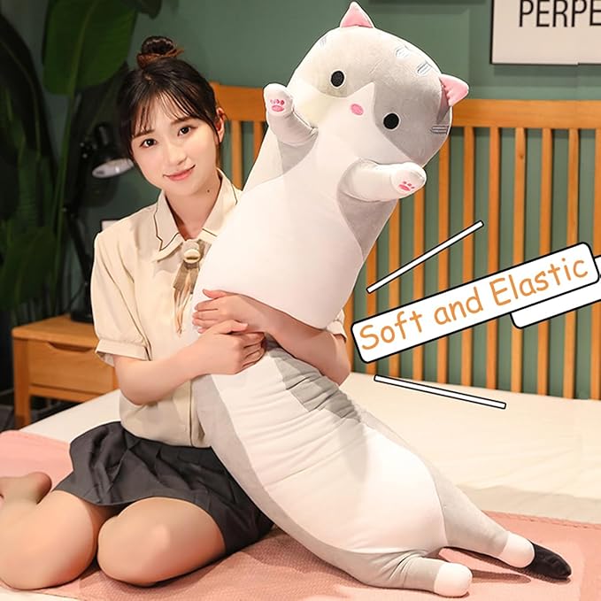 Grey Cat Long Plush Pillow Kitty Stuffed Animals Soft Sleeping Throw Pillow Doll Toy (Grey,27inches)