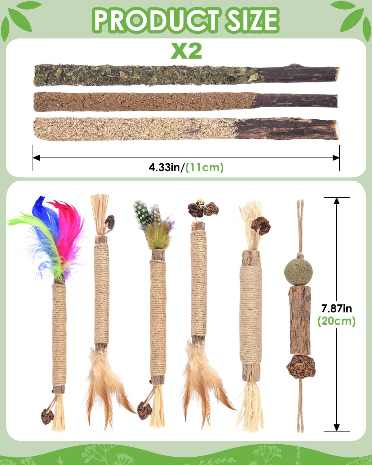 - 【Natural Silvervine Sticks】Our silvervine sticks are made from natural silvervine, raffia, sisal rope and gall fruit (fruit of silvervine), there are absolutely safe for cats to chew and bite.