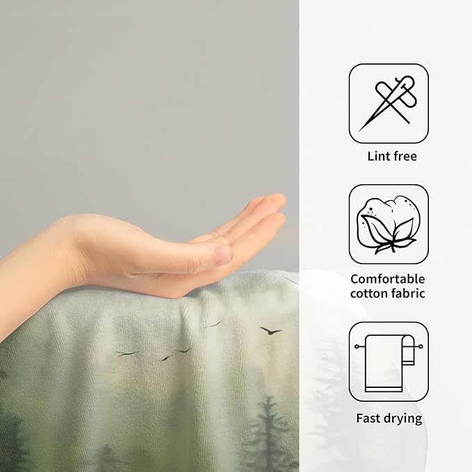 - 【Perfect Gift】This foggy forest hand towel makes a great addition to any space. It also a perfect gift for your family and friends. Great hostess gifts, housewarming gifts, or birthday gifts!