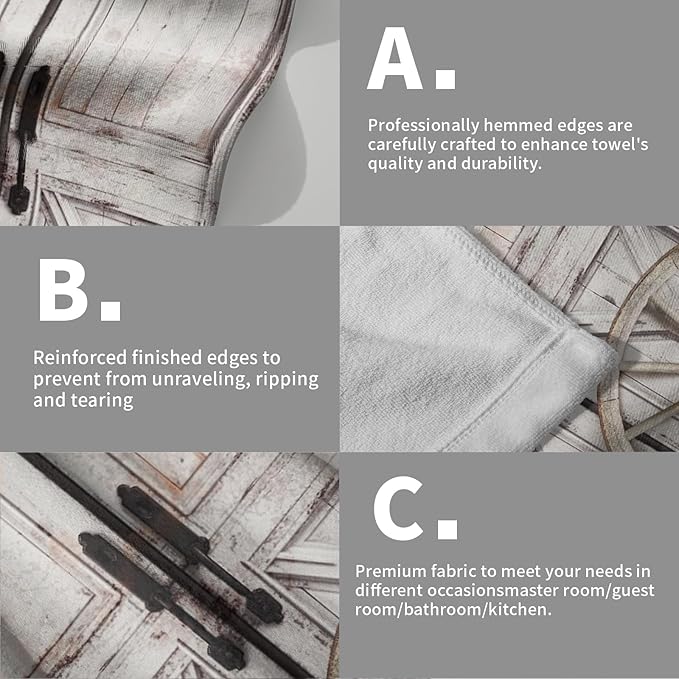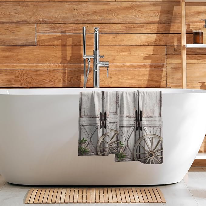Giwawa Rustic Wood Hand Towels Set of 2 Barn Door Dish Towels Soft Absorbent Decorative Fingertip Bath Towel for Bathroom Gym Hotel Home