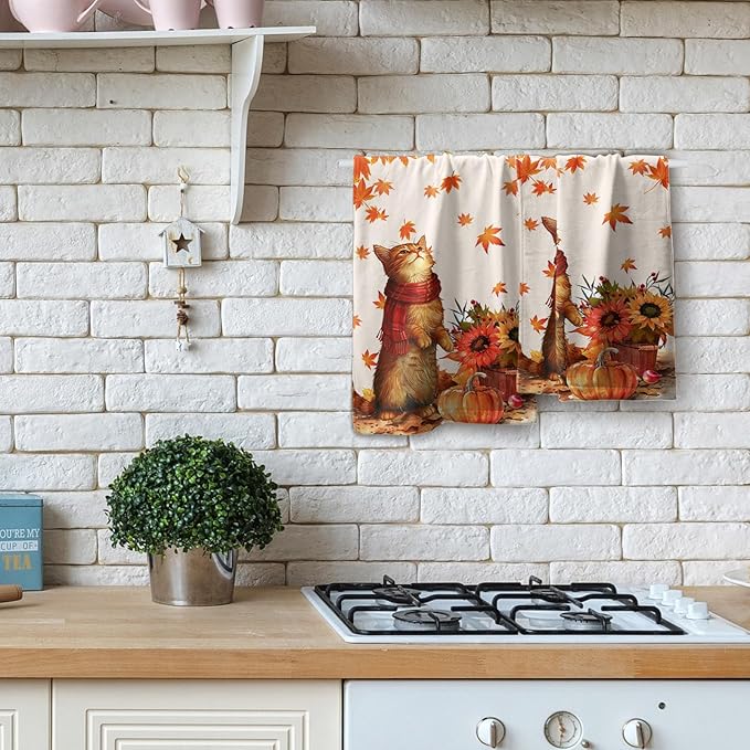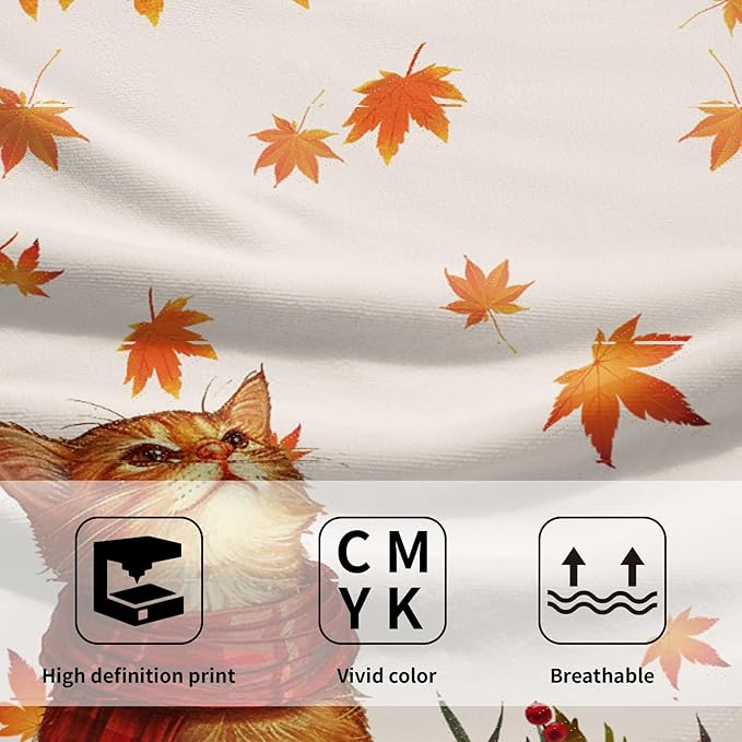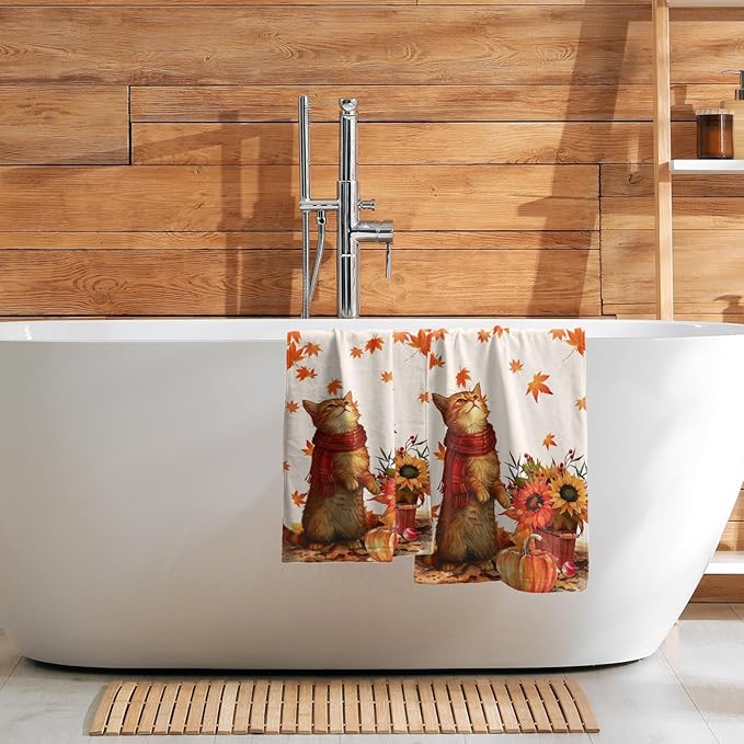 Giwawa Fall Cat Hand Towels Maple Leaves Kitchen Dish Towel Set of 2 Soft Fingertip Small Bath Towel Washcloths Decor for Hotel Spa Gym Sport